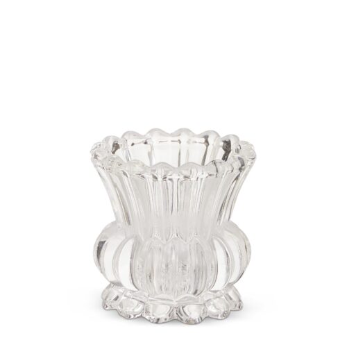 Clear Ruffle Glass Candleholder Pair