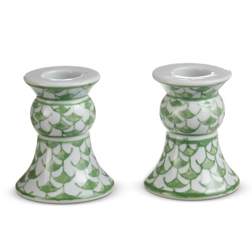 Green Fish Scale Candle Holder Pair