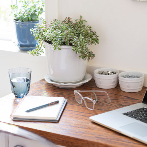 Berry & Thread Whitewash Planter & Saucer 5.25″
