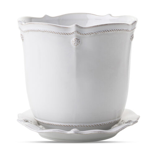 Berry & Thread Whitewash Planter & Saucer 12″