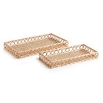 So much to love about this pair of well-scaled trays. The novelty of the pattern, the skilled artistry, the varying tones. They make a charming base for books or an objet on an ottoman, or display as is and show off the craftsmanship.