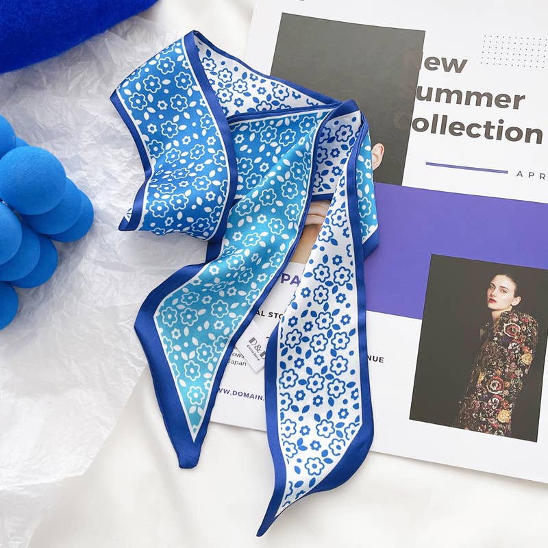 Elegant floral print blue scarf