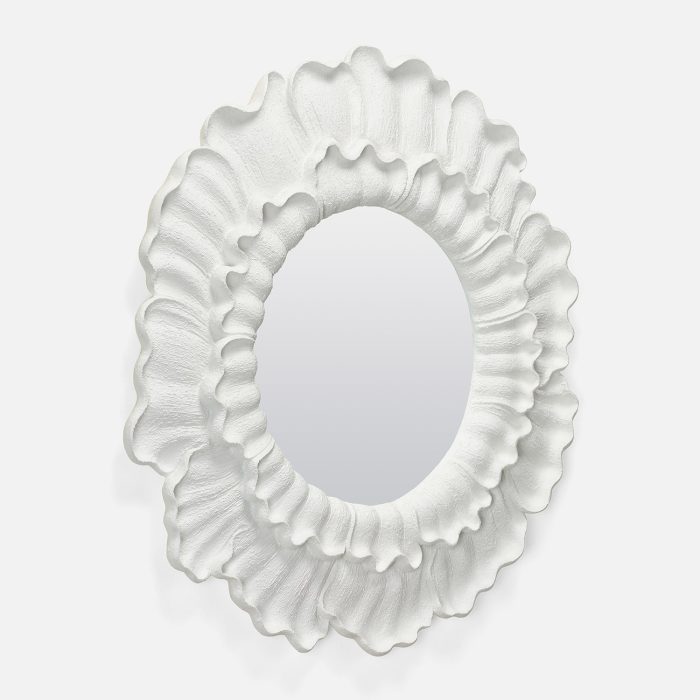 The scalloped rattan floor mirror is bordered by a series of scalloped edges meticulously woven using high quality rattan material. Measuring generously in size, the mirror is designed to be versatile and can be hung both horizontally and vertically. The floor mirrors versatile nature allows it to seamlessly blend with various interior styles, from coastal and bohemian to modern and eclectic.