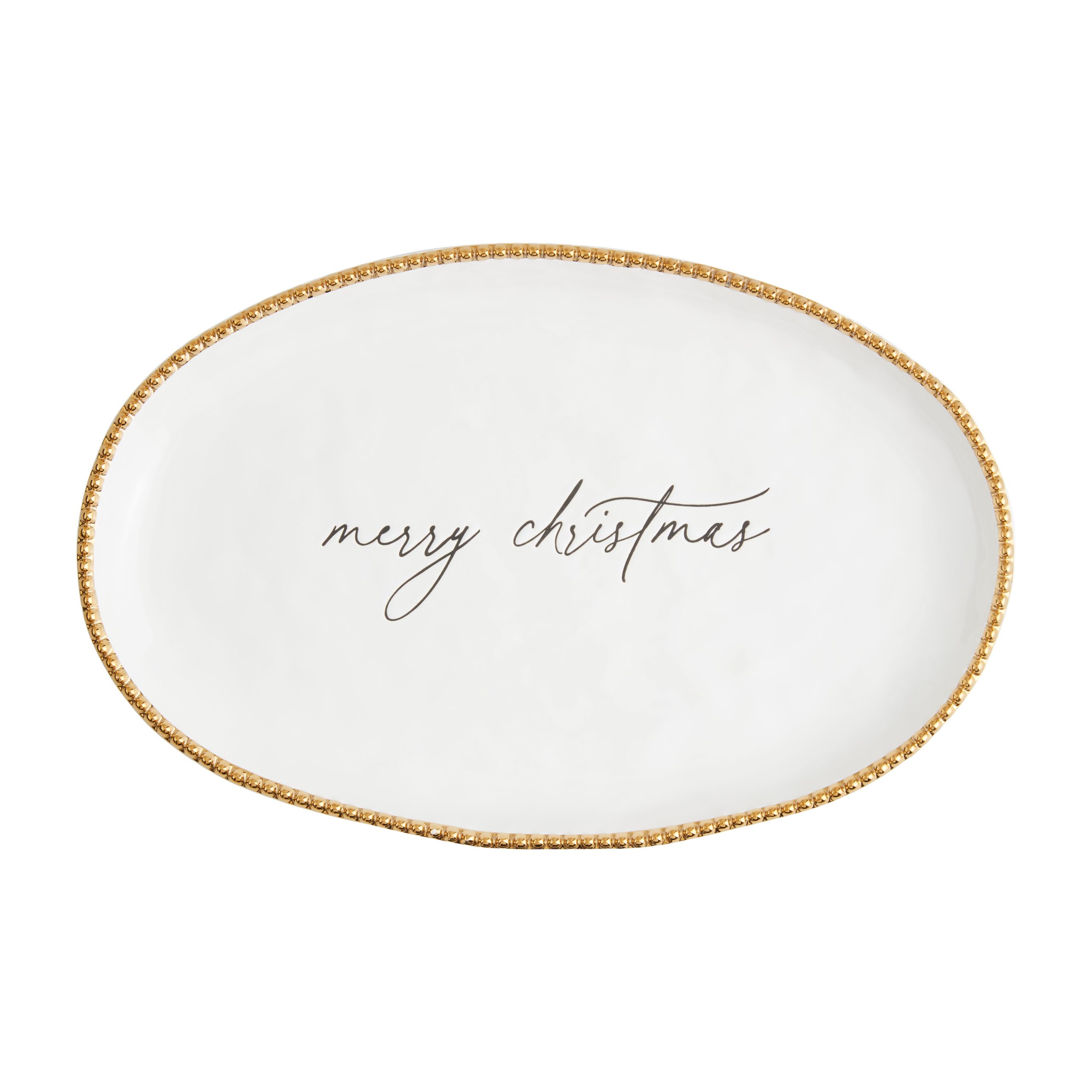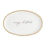 Mottled ceramic platter features hand-painted electroplate beaded rim.