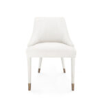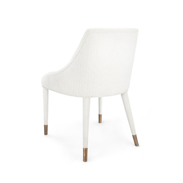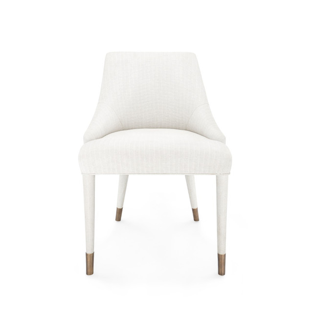 Softness and structure are delivered in equal measure in the Odette Armchair, a comfortable piece to show off as an accent or use as a set around a dining table. Wrapped in head-to-toe natural linen with a subtle herringbone design, the Odette radiates quiet elegance with a textural nod to the organic. The gentle curves and fluffiness of its silhouette are anchored by four rounded legs, capped in bronze. The angled positioning of the two back legs recall mid-century modern design, giving the piece a retro aesthetic that’s timelessly chic. Curl up with a book or sit back and enjoy a meal with friends and family. No matter where you choose to place the Odette, its cosmopolitan presence is sure to impress.