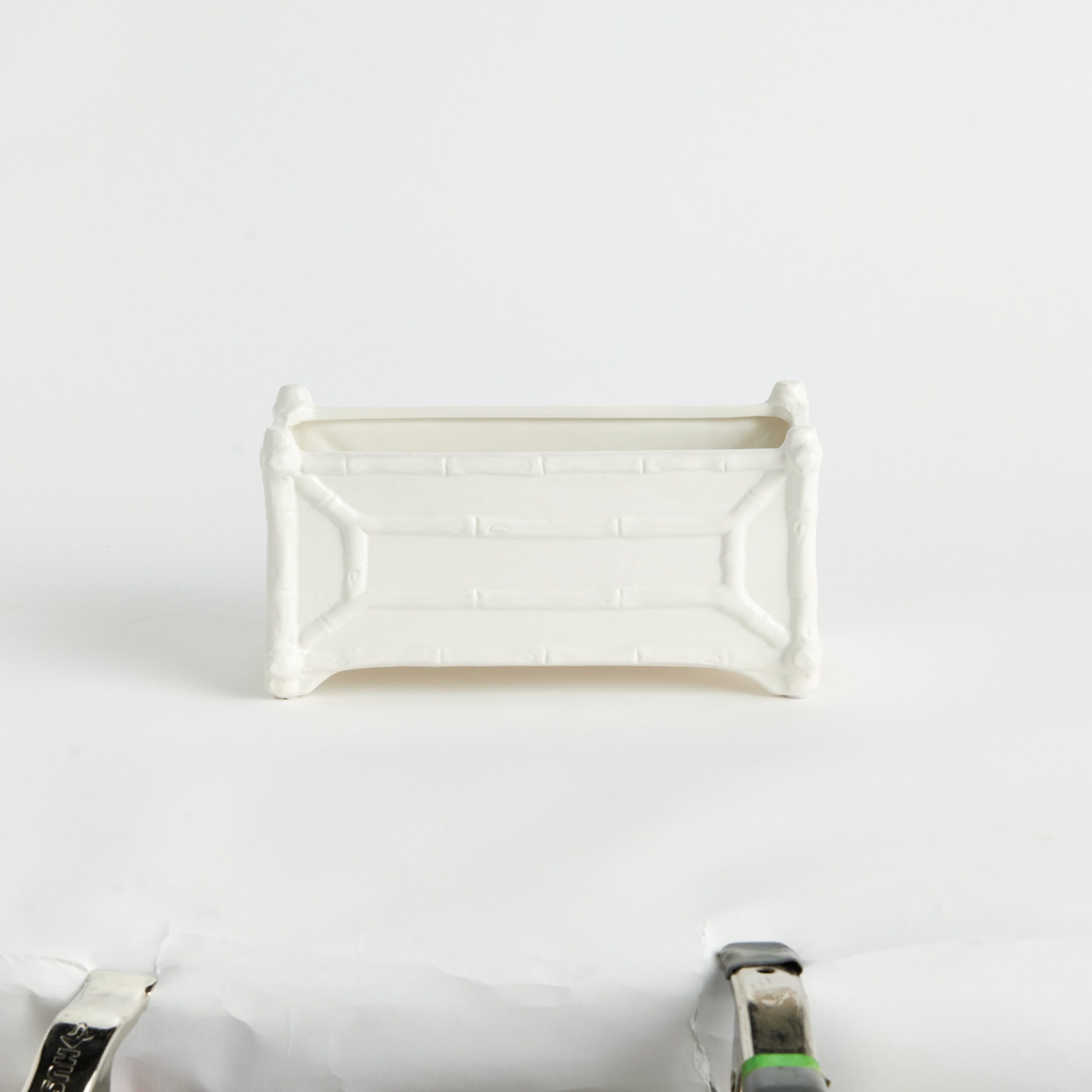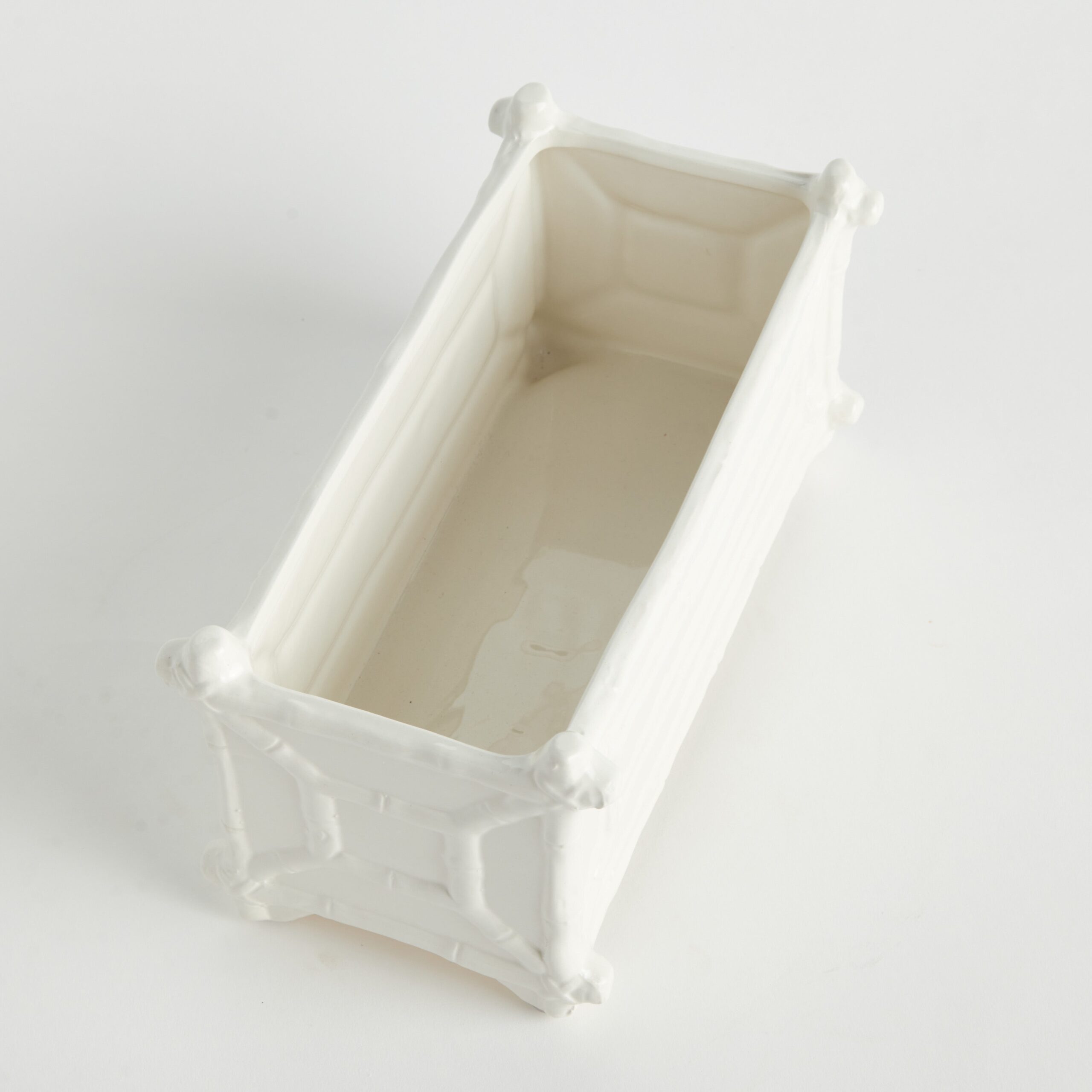 Interior designers are always on the hunt for that tried & true accent to enhance their well-appointed space. This clean, white cachepot is made in classic style. With unmistakable chinoiserie-inspired bamboo-like details, it is sure to be a bestseller.