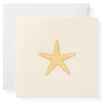 Our Starfish Gift Enclosure is printed and hand-glittered in Memphis, TN. Hand crafted artwork, full color ink printed on natural white paper, hand-glittered, and paired with a vellum envelope. Book-folded enclosure card, blank on the inside.