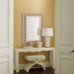 The Loop Mirror adds a whimsical touch to your wall with its charming looped ribbon motif framing a classic rectangular shape. Crafted from lacquered resin, it has a solid, glossy appearance but remains lightweight and easy to hang. The high-shine finish and sculptural detail make it an eye-catching accent that feels both fun and refined. Whether styled in an entryway, powder room, or playful living space, the Loop Mirror brings personality and charm to any interior.