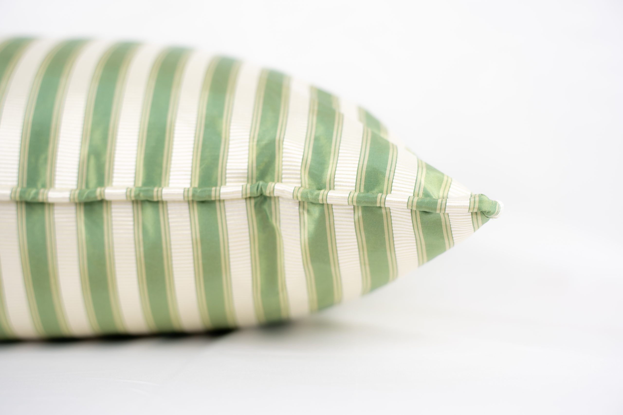 From the House of Scalamandre, our Shirred Stripe silk pillow is a Summerfields exclusive, customized with self welt and an overstuffed 90/10 down filler for the ultimate in luxury design. Includes an invisible zipper.