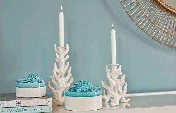 Inspired By The Madrepore, Stony Coral, Found In The Tropics, This Graceful White Candlestick Was Created By Master Ceramic Artists In Italy. The Simple White Glaze Contrasts With The Rough Texture To Create A Lovely Addition To Any Space. Pair With Our Smaller Version To Amplify The Coastal Theme In Your Design.
