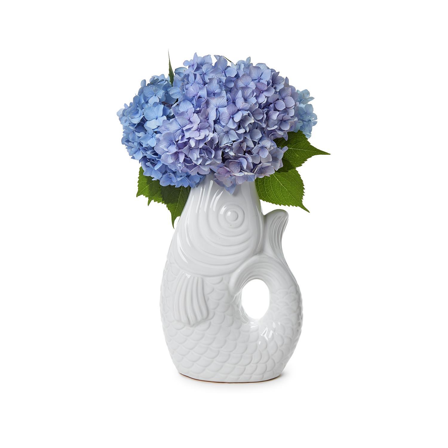 Handcrafted from ceramic, this exquisite fish vase brings the essence of the ocean into your home. Its intricate fish design and soothing blue hues evoke a sense of tranquility and elegance. Perfect for displaying your favorite flowers or standing beautifully on its own, this vase is a statement piece for any beach-inspired decor.