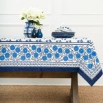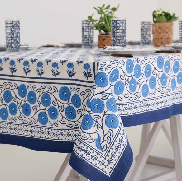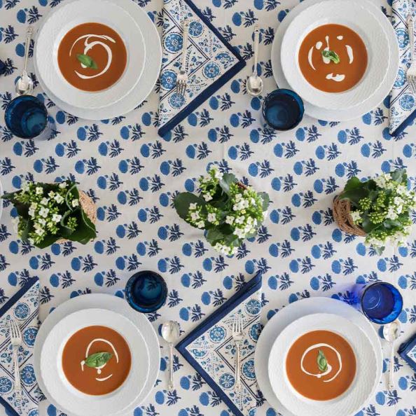 With a modern, slightly exotic design, our Gaya Cobalt Tablecloth sets a casual but elegant mood at the table, when gathering with family and friends. Pair with matching napkins to complete the look. Available in assorted sizes.