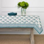 Transform your dining table into a work of art with the Sagar Aqua Tablecloth. This stunning tablecloth showcases a hand block printed pattern in tranquil aqua shades, bringing a sense of calm and sophistication to your meals. Made from 100% cotton, it is not only beautiful but also durable and machine washable, ensuring it remains a centerpiece of your dining decor for years to come.