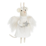 Feel blessed and enlightened with this sweet Angel Mouse with Furry Wings ornament. Dressed in a pure white dress and holding a sparkly silver star, this lovely little white mouse ornament will bring some sparkle and joy to your tree.