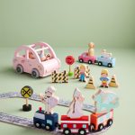 12-piece set includes four wooden construction vehicles, two road blocks, two workers, two road signs and two cones. Ages 3+.