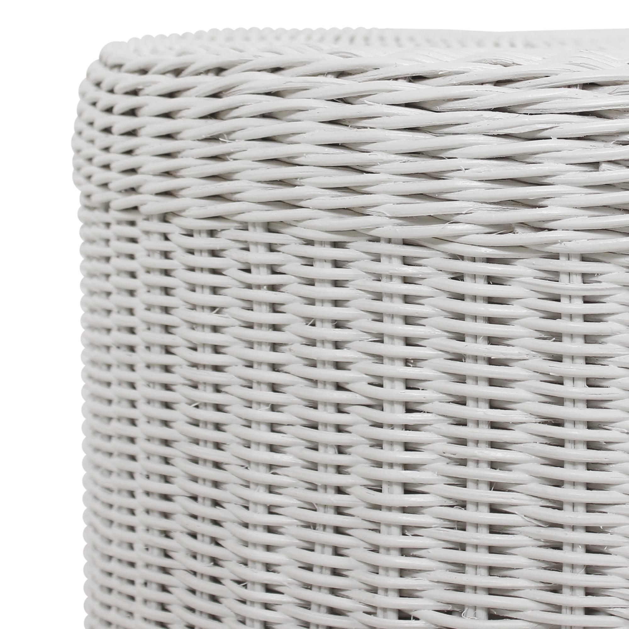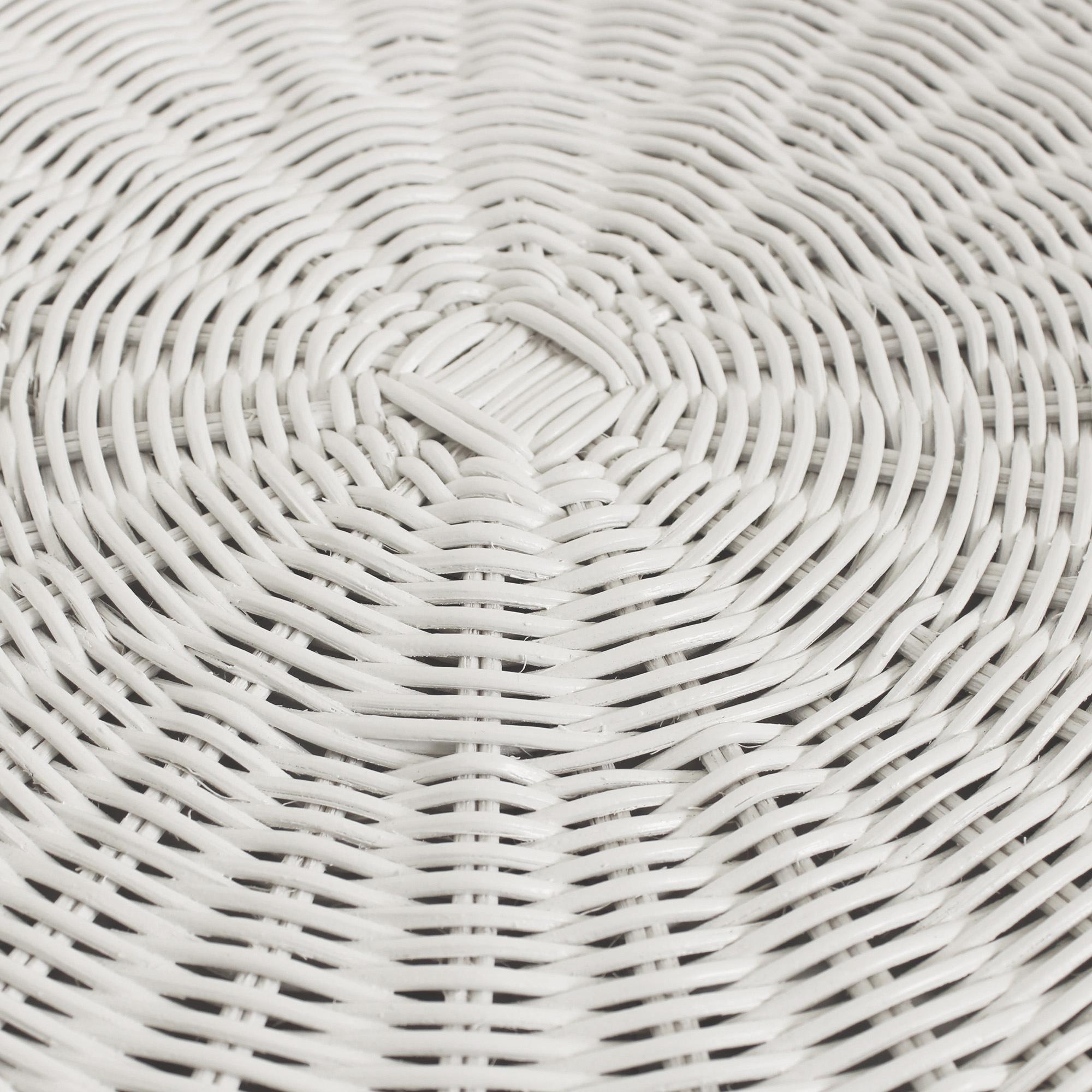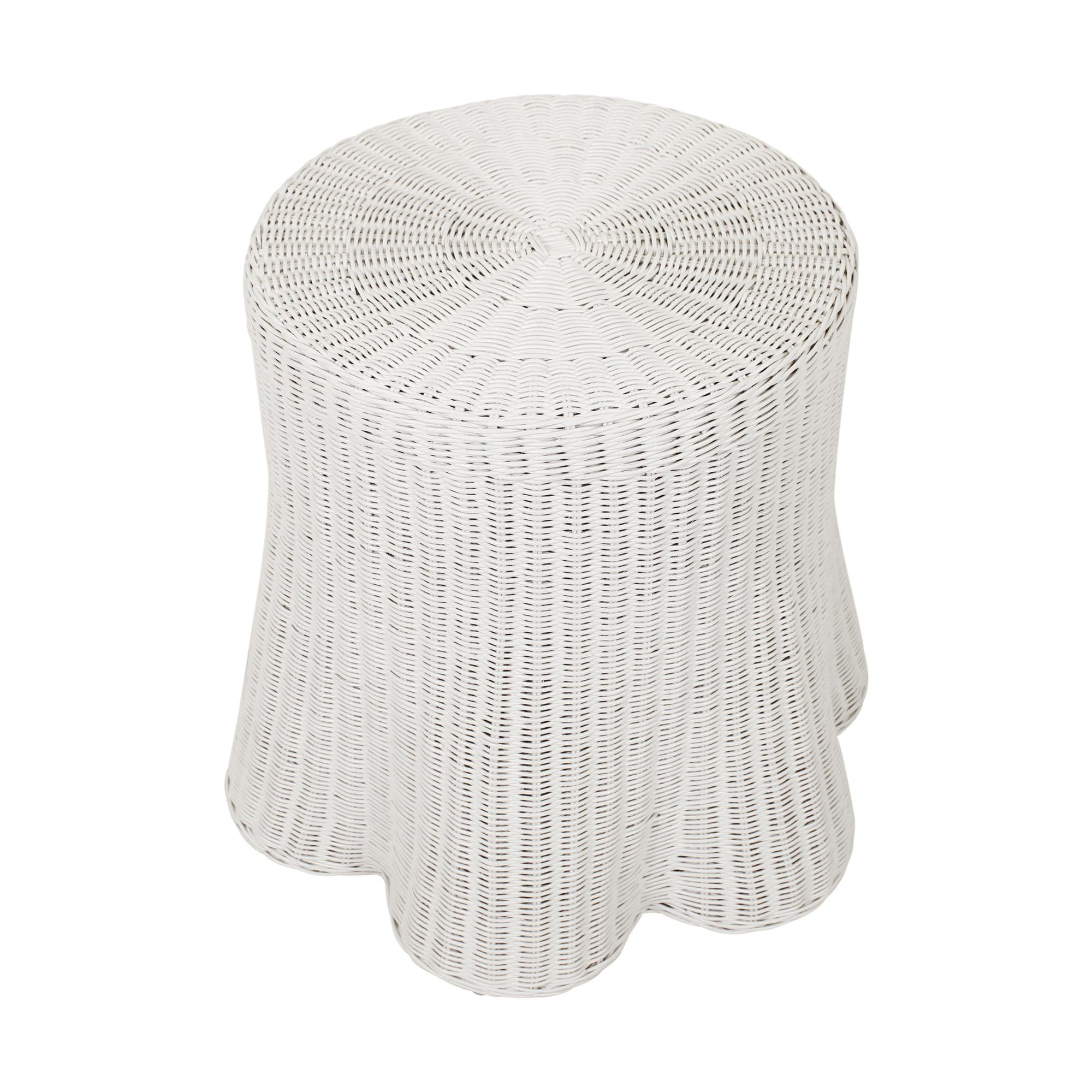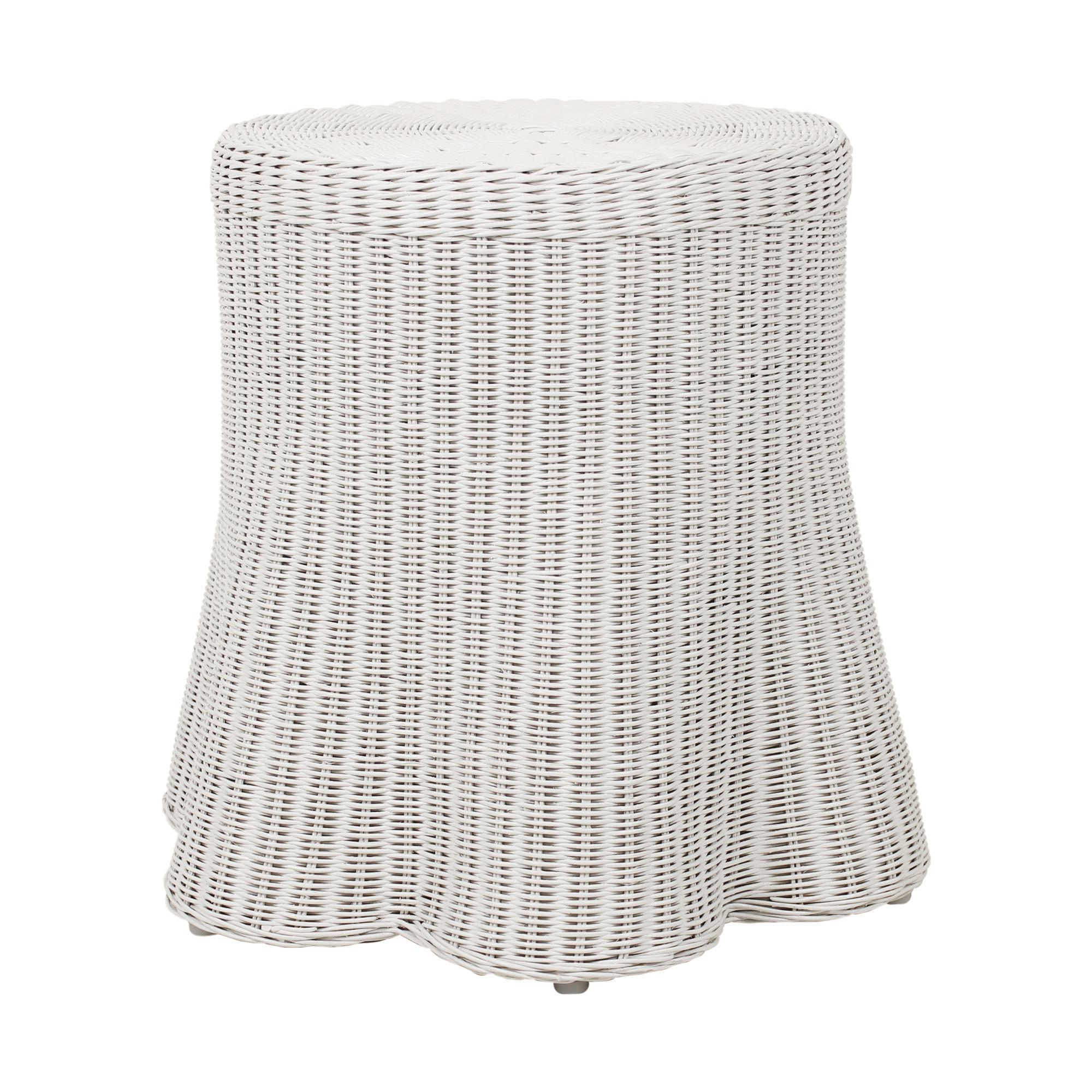 This beautiful coastal design features scalloped edges and handwoven rattan. This handwoven scalloped side table creates enchanting visual illusions with its wave-like edges, adding captivating interest to any space.