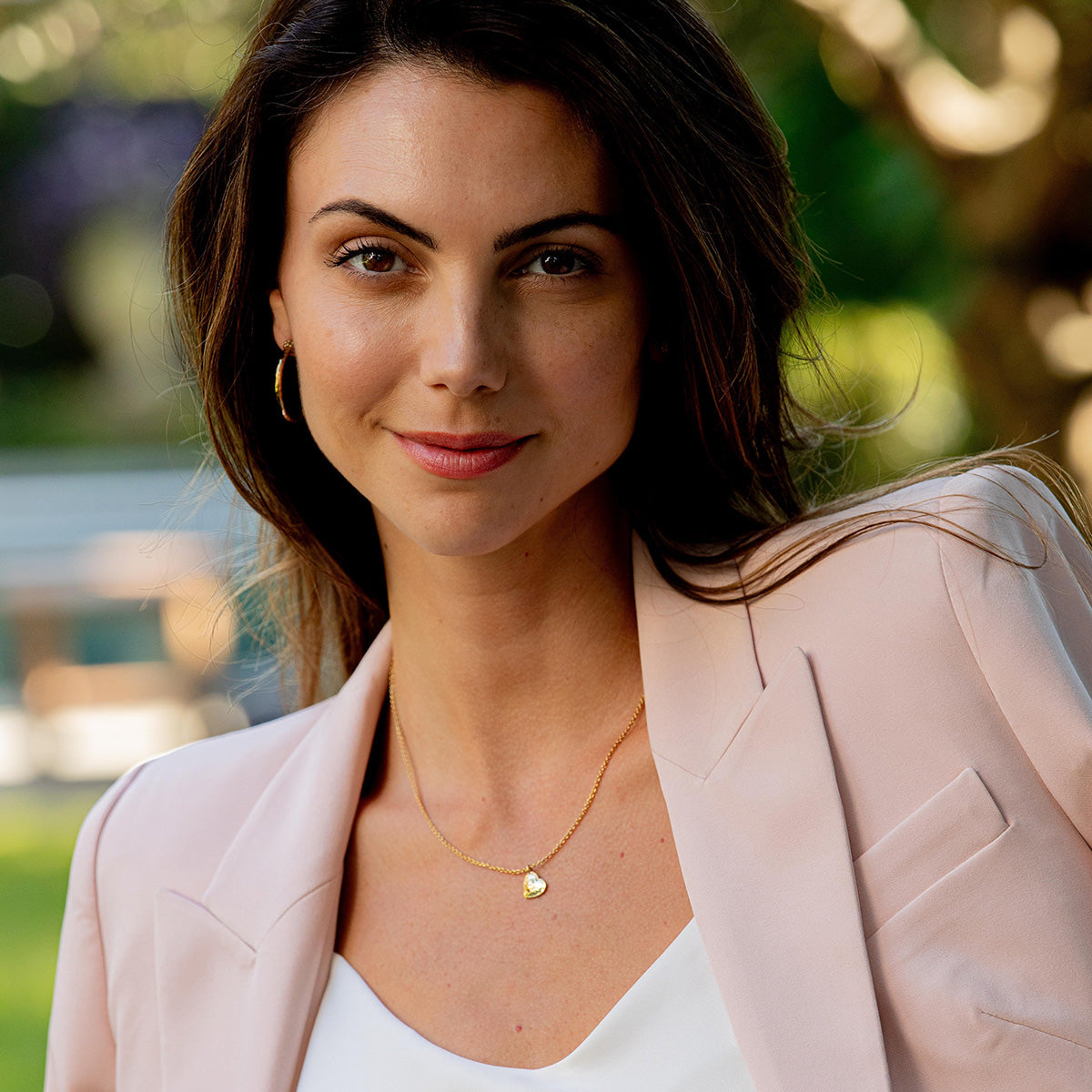 A sweet, singular heart shimmers in handcrafted, hammered gold, embellishing a classic chain for a dainty touch of elegance and romance. Wear it alone for a subtle statement or layer with other necklaces—this go-to staple piece is a little bit of love to wear every day.