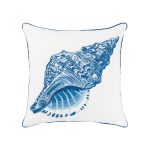 Truly a rare find, the majestic conch shell whispers the secrets of the sea. Embroidered with varying tones of indigo, sky, Copenhagen, and cerulean blues on crisp white panels, our Olefin performance fabric outdoor pillow brings the sea to your patio. Fabric resists stains, sun-fade and cleaning abrasion.
