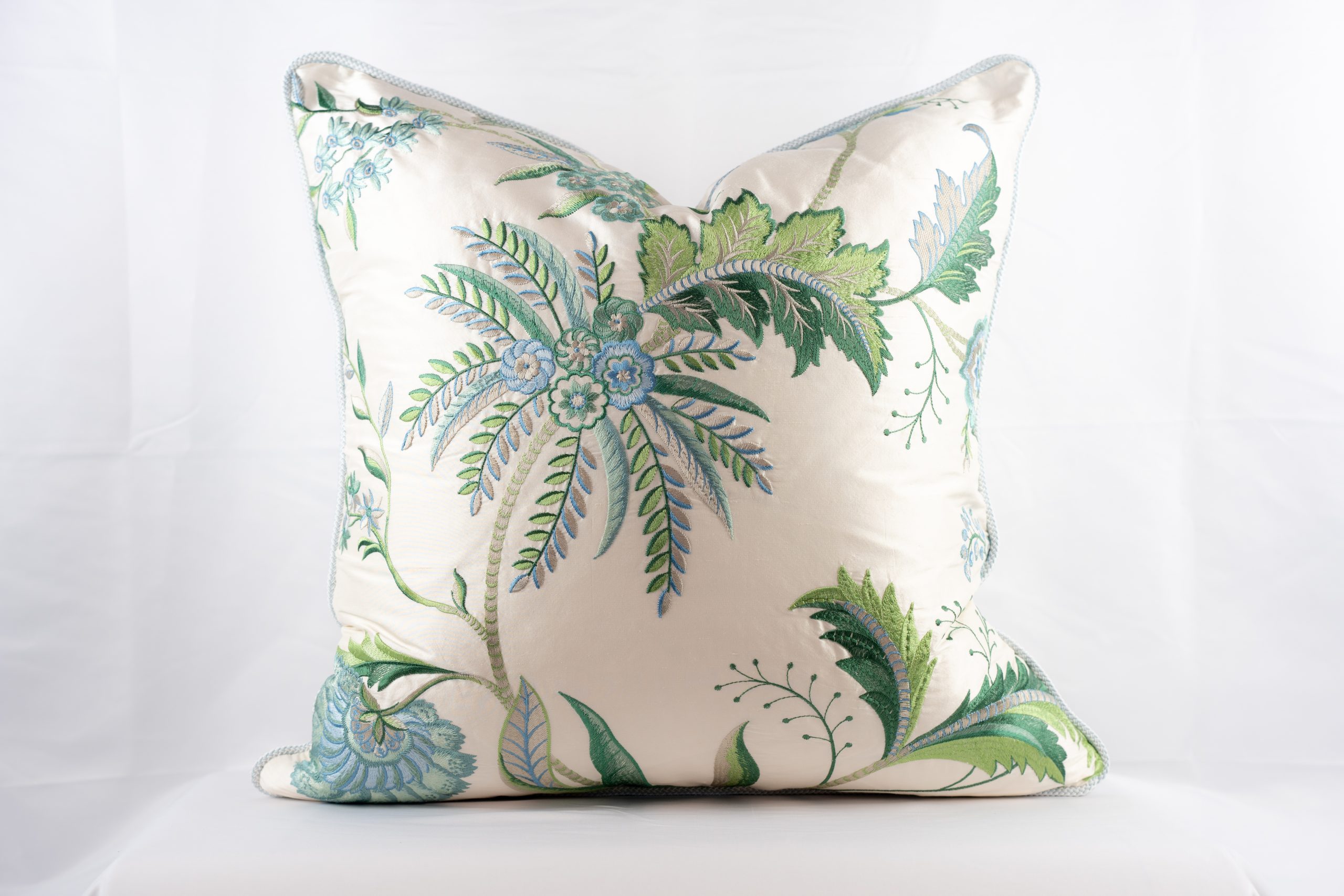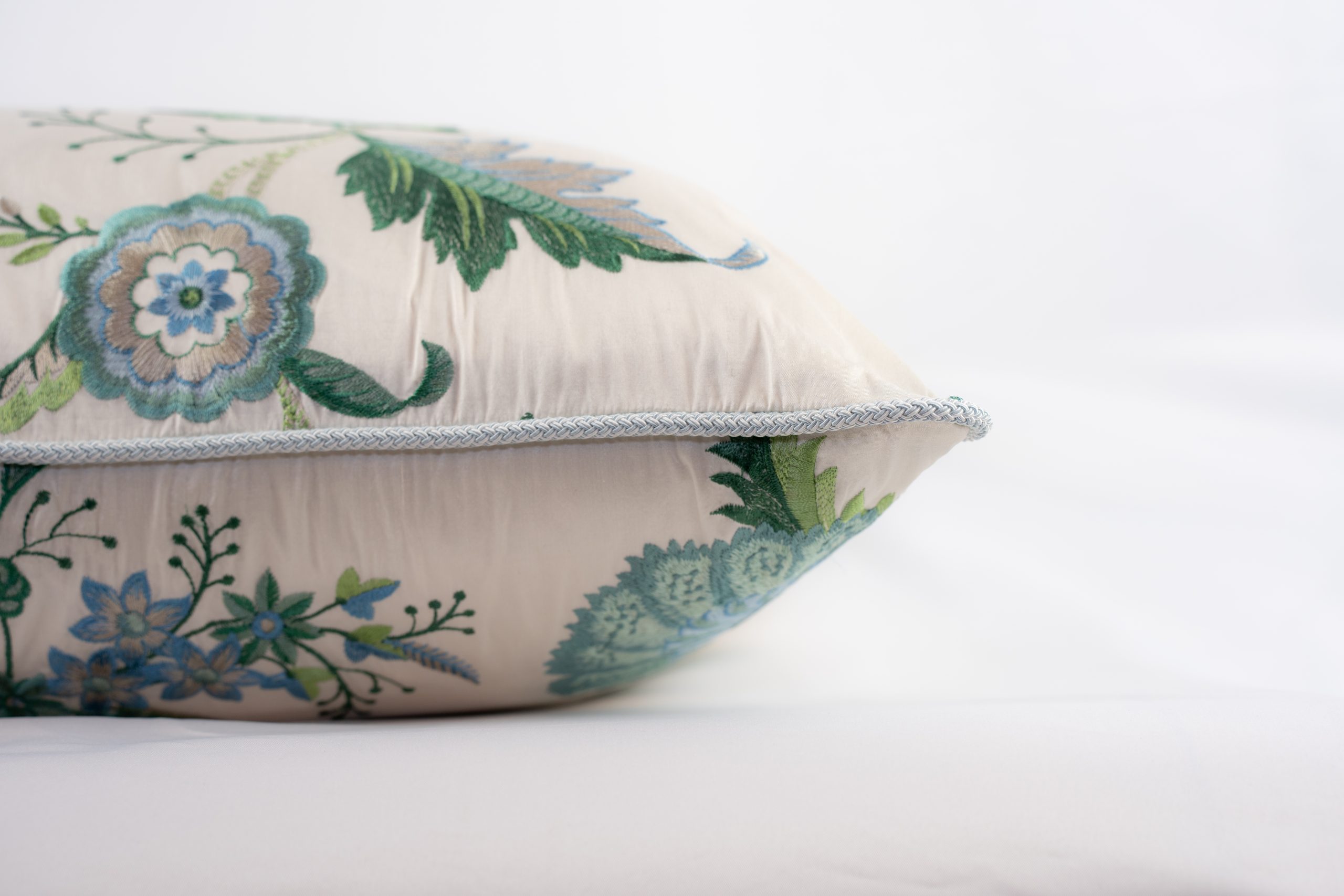 From the House of Scalamandre, our Seraphine embroidered silk pillow is a Summerfields exclusive, customized with a coordinating trim, and an overstuffed 90/10 down filler for the ultimate in luxury design. Includes an invisible zipper.