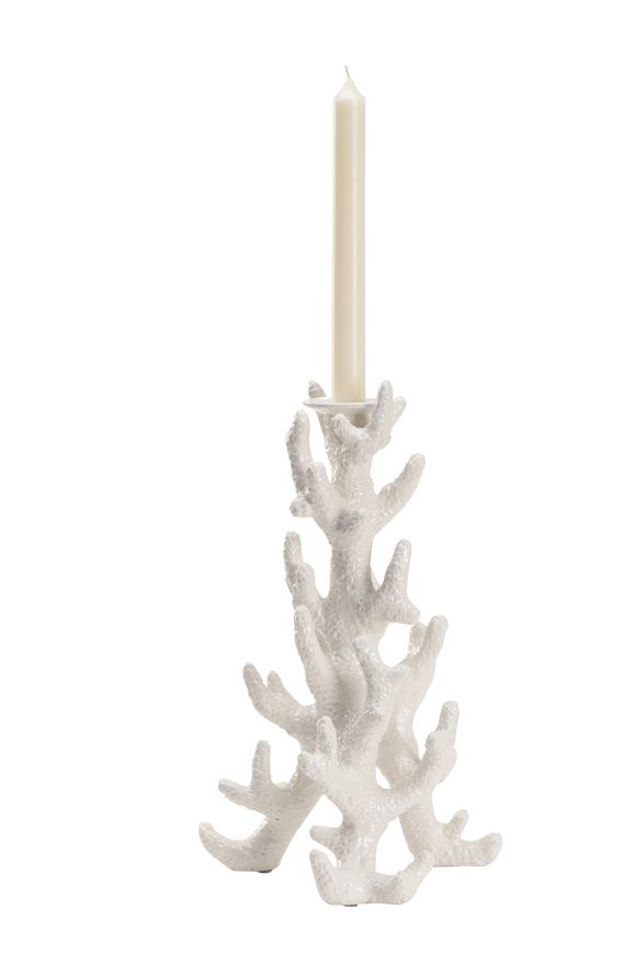 Inspired By The Madrepore, Stony Coral, Found In The Tropics, This Graceful White Candlestick Was Created By Master Ceramic Artists In Italy. The Simple White Glaze Contrasts With The Rough Texture To Create A Lovely Addition To Any Space. Pair With Our Smaller Version To Amplify The Coastal Theme In Your Design.