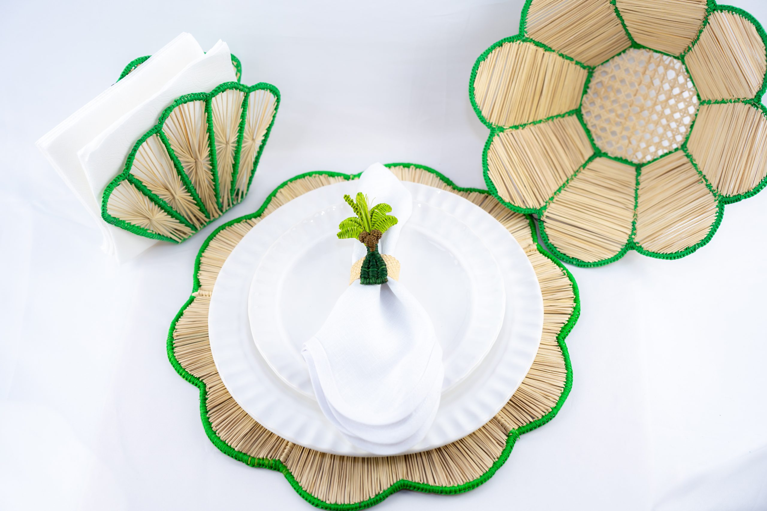 These stunning and fun napkin rings are made of Toquilla palm by women artisans from Sandoná, a small town tucked in the mountains of Southern Colombia. Using a traditional technique, the process begins by obtaining the threads from the leaves of the Toquilla, which are then dyed and interwoven to create beautiful and intricate pieces that are the ultimate expression of the region’s culture and identity. For decades, artisan communities in the region have preserved this art of weaving Toquilla palm, and it currently constitutes their main source of income.