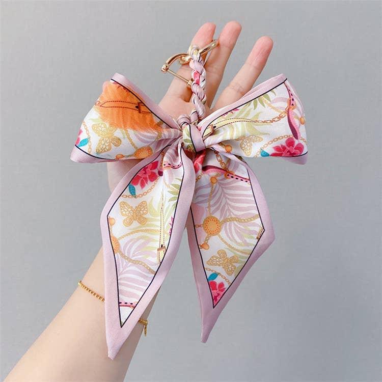 Fashion Print Scarf Keychain- Pink